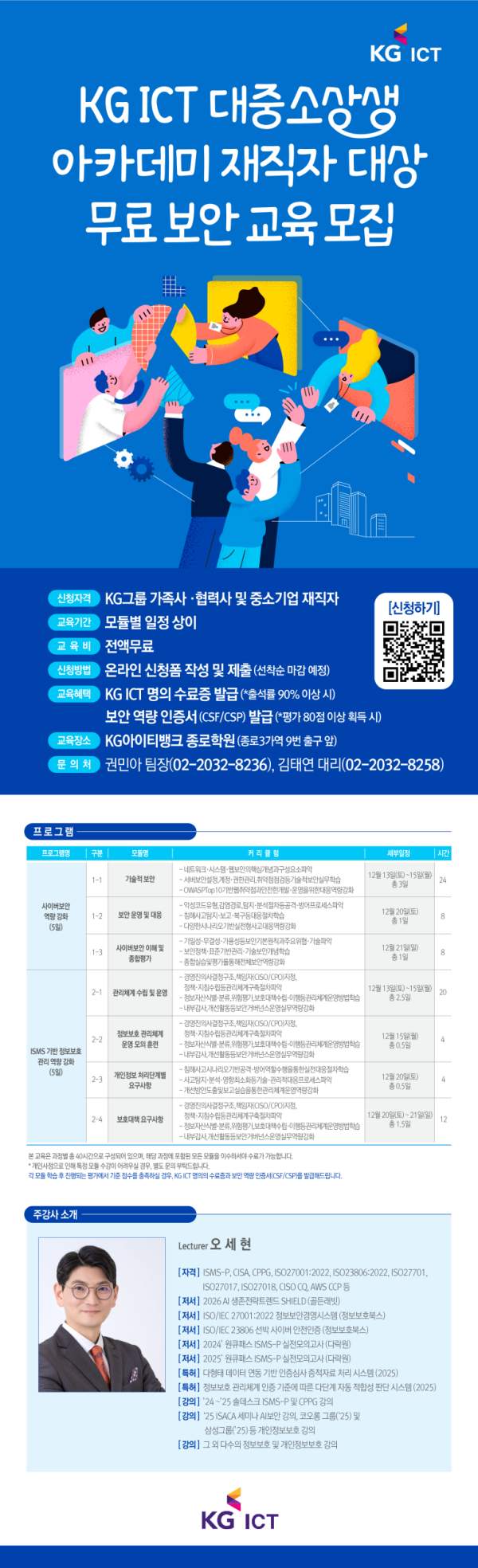 12월_KGICT 대중소상생 아카데미 재직자 대상 무료 보안 교육 모집